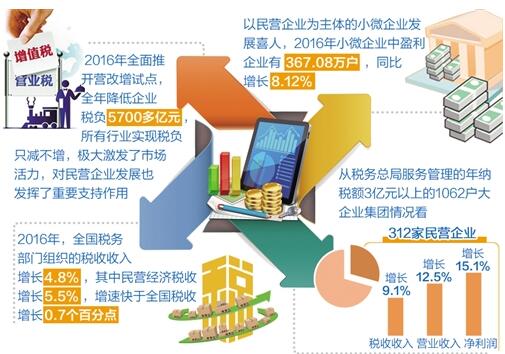 “总体来讲,税收政策是中性的,对各种经济类别的纳税人一视同仁,目的就是营造公平竞争的税收环境。但考虑到民营经济存在抗市场风险能力相对偏弱等实际情况,国家专门出台了鼓励民营企业投资和科研等税收优惠政策,这些政策与其他普惠性政策一道,综合发力,有力地助推了民营经济茁壮成长。”国家税务总局局长王军说。