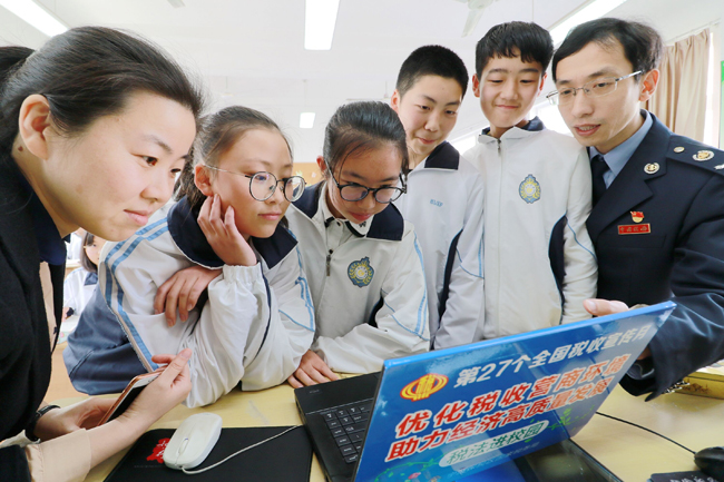 “我们没有挣到钱,没有纳过税,税收知识对我们有用吗?”“其实,你们每一个人都直接或者间接地与税收发生了关系。当你的父母为你买了新衣服,或者你们一家人外出就餐索要发票,这些行为都为国家税收作了贡献。”这是在苏州张家港南沙中学,张家港保税区的税务人员和学生的对话。税务人员利用浅显易懂的税收小故事,结合生动活泼的视频动画,向学生们讲解贴近生活和时政的税收知识。